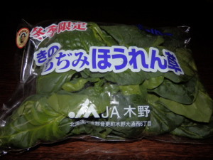 ってか、木野ってどこよ? 袋には音更町木野、と書いてある。 ああ、音更ゆうたら十勝、帯広の上のとこな。 ま、地元民に聞かれれば 「帯広の上じゃねえ!音更の下に帯広があるんだ!」 というお叱りがありそうだが。 まあいい。兎にも角にもそんな高級ほうれん草を買って帰ってきた訳である。 さて、そんなほうれん草を前にしてハタととまる私。 こんな高価なほうれん草、どうして食べればいいのかしらん? バターでソテーするとか…。 吊るしベーコンがあるから、そぎ切りにしたそれといっしょに…。 いやいや、いっそホワイトソース作ってグラタンにするか…。 しかし、それはほうれん草をほうれん草として楽しむ、という観点からは邪道なのではあるまいか。 明らかにグラタンメインだし…。 と、しばし悩んだ末に、結局おひたしにすることとした。 いつも通りである。芸がないと笑わば笑え。 私の作るほうれん草のおひたしは、至高の一品であるという自信がある。 まあ、大きい鍋にたっぷりの水、そして塩ひとつまみでゴンゴンに沸かした鍋にほうれん草を放り込んで一分少々で一気に冷水にあけてやるだけの、ごく普通のゆでほうれん草なのだがな。 で、出来上がりがこんな感じ。 …………。 これが一皿300円とか…。 牛丼並より高いじゃねーか。 ああ、きっと料亭とかではほうれん草のおひたし単価で1000円くらいするんだろうな、こういうの使ってさ。 いやいや、もっとかな? ワシは日本で最高のほうれん草を使っていると自負しておるッ!みたいな。 まあ、料亭ではおひたしなんぞの単価出ないけど。 そんな、ひたすらな贅沢っぷりに自分でも若干引き気味になりながら食ってみたのだが。 いや、洒落にならんほどうまいなコレ。 肉厚で歯を押し返す感触がまず違う。 甘みが際立って強く、風味が普段のほうれん草よりはるかに濃厚なのがわかる。 これだけで酒の肴になりそうな勢いだな、実際。 さすがにいつも、というわけにはいかんが、このほうれん草を楽しめる冬の間は何度か楽しんでみたい、そう思わせるよき品であった。 こんどは炒める系の料理をしてみようかな? あぶらげとこのほうれん草をしょうゆと味醂で煎り付けてやるとか。 ああ、いいなあ。 いい食材は、心も豊かにしてくれる、かも知れない。